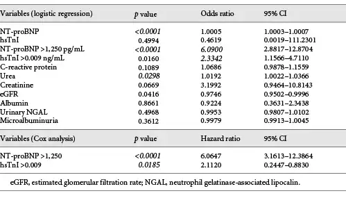 Blood tests for routine biochemical analysis included serum levels of standard C-reactive protein, NT-proBNP, and hsTnI, and a urine test for the evaluation of microalbuminuria and urinary neutrophil gelatinase-associated lipocalin (Dimension® Clinical Chemistry System, Immunoassay Module and VITROS Immunodiagnostic Products, Triage® Biosite, Alere, respectively).