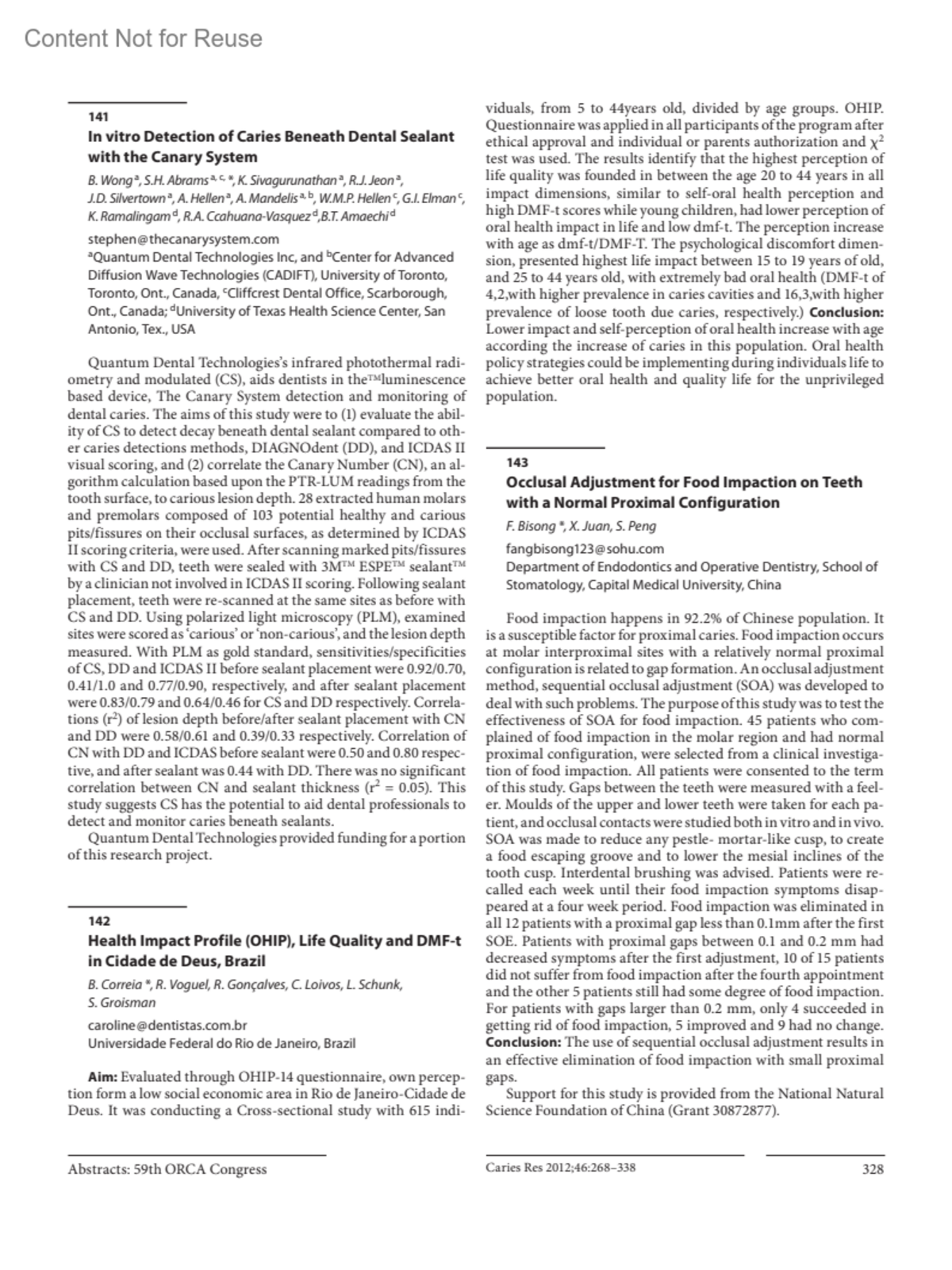 In vitro Detection of Caries Beneath Dental Sealant with the Canary System
