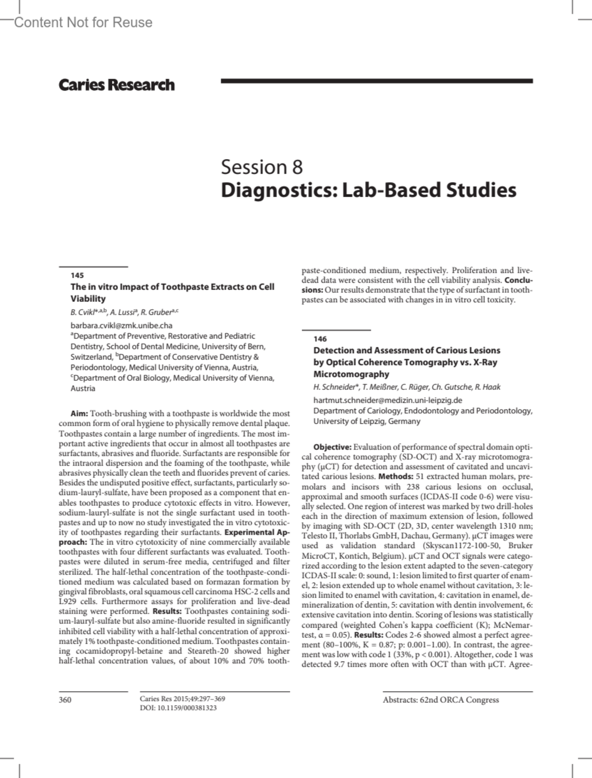 aDepartment of Preventive, Restorative and Pediatric Dentistry, School of Dental Medicine, University of Bern, Switzerland, bDepartment of Conservative Dentistry & Periodontology, Medical University of Vienna, Austria, cDepartment of Oral Biology, Medical University of Vienna, Austria