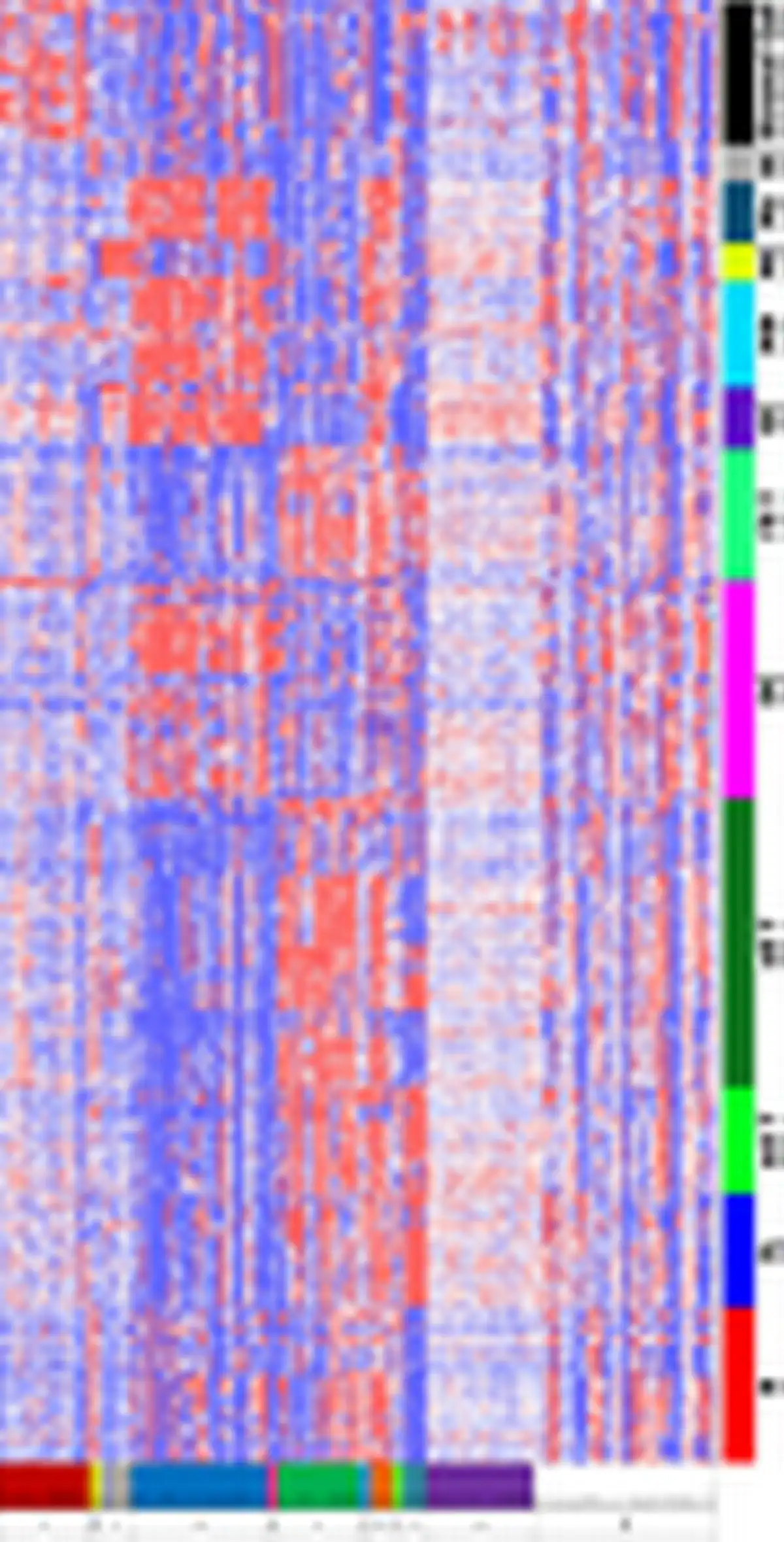 To visualize the gene expression profiles of the clusters, a heat map of the gene expression per cell lineage was constructed. Therefore, gene expression data were imported into Omniviz software version 6.1.13.0. Using Omniviz, the geometric mean of each probeset was calculated and transcriptomic data was log2 transformed to normalize the data. Changes in gene expression were constituted by deviations from the geometric mean to visualize whether genes of immune cell lineages were higher or lower expressed. These deviations are visualized in a heat map by a gradient from red (high expression) to blue (low expression) and ordered per cluster.