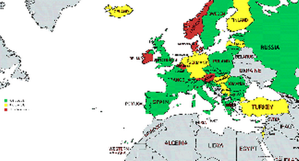 Overview of countries with a specialty (green), subspecialty (yellow) or without a (sub)specialty (red)