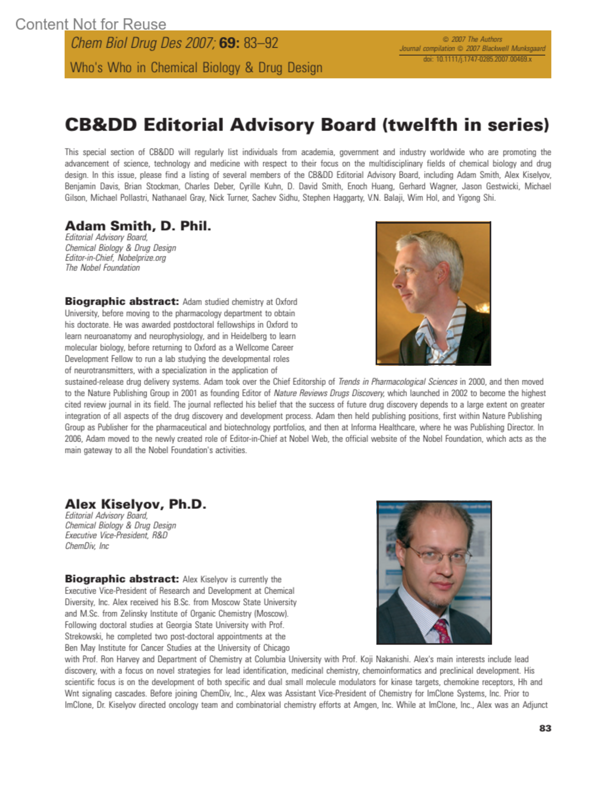 CB&DD Editorial Advisory Board (twelfth in series)