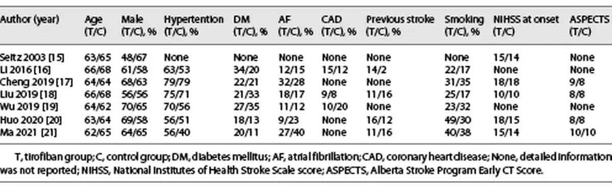 • 23. Tao C, Zhu Y, Zhang C, Song J, Liu T, Yuan X, et al. Association between tirofiban monotherapy and efficacy and safety in acute ischemic stroke. BMC Neurol. 2021 Jun 24;21(1):237. https://doi.org/10.1186/s12883-021-02268-8.