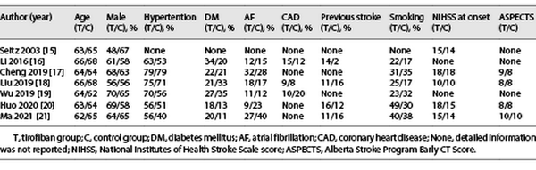 • 25. Zhao L, Jian Y, Li T, Wang H, Lei Z, Sun M, et al. The safety and efficiency of tirofiban in acute ischemic stroke patients treated with mechanical thrombectomy: a multicenter retrospective cohort study. Biochem Res Int. 2020 Apr 27;2020:20205656173. https://doi.org/10.1155/2020/5656173.