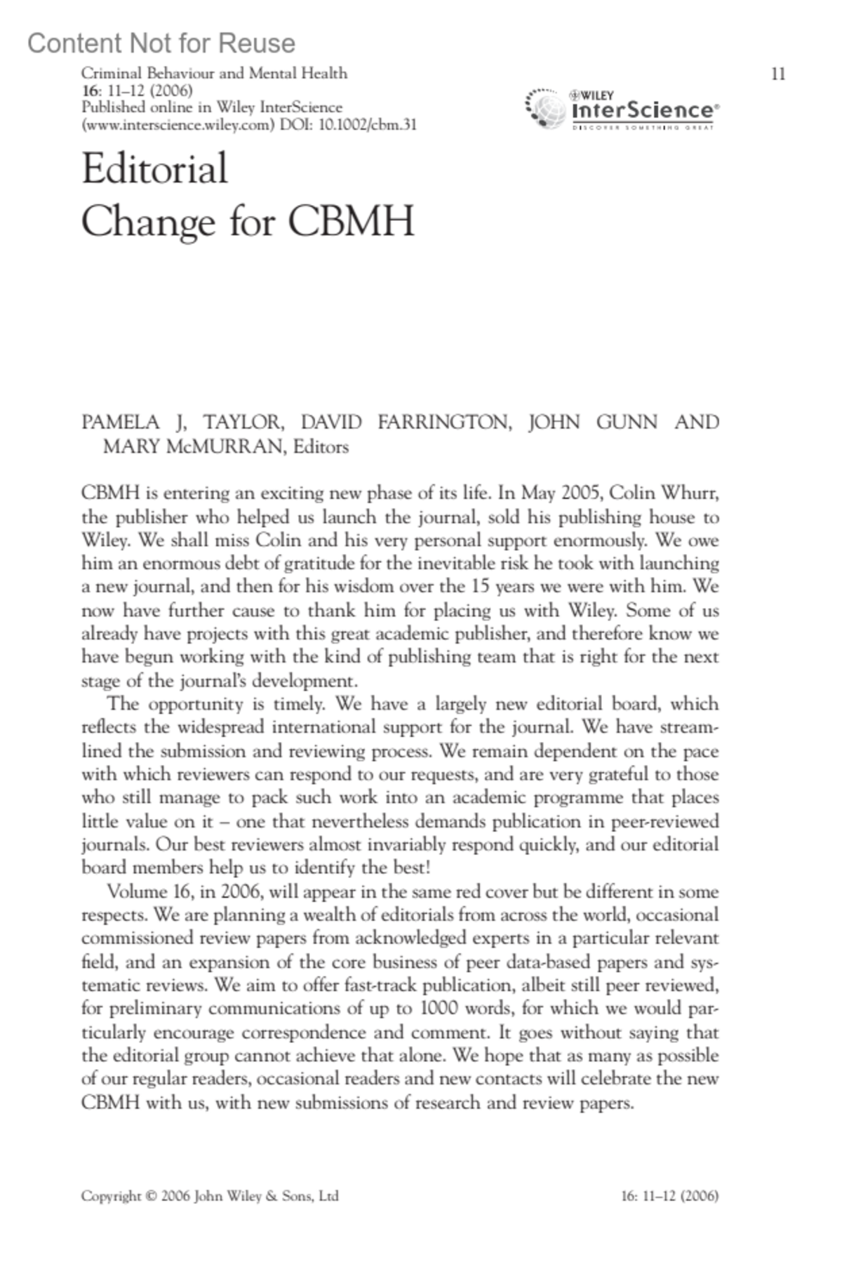 Criminal Behaviour and Mental Health 16(1):p 11-12, March 2006.