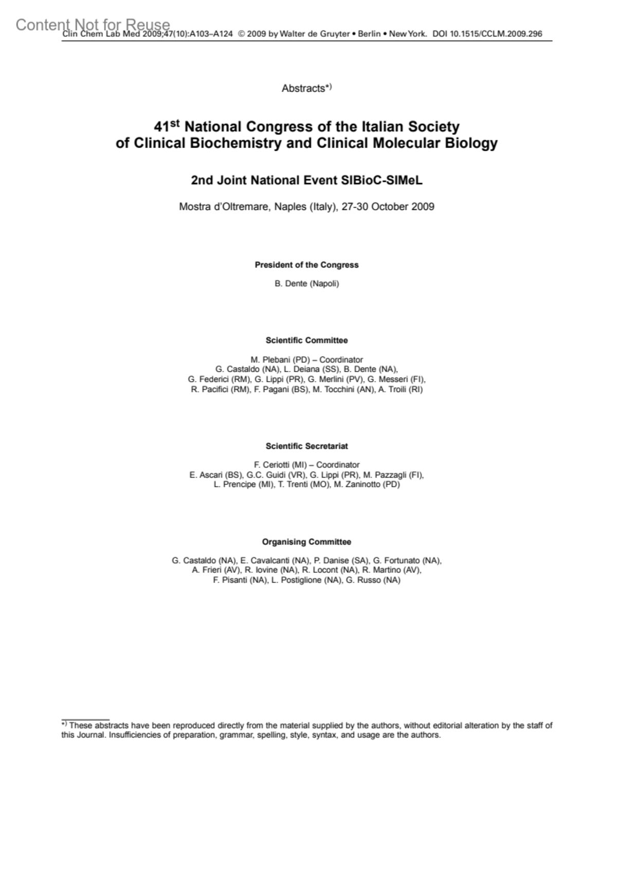 Clinical Chemistry and Laboratory Medicine 47(10):p A120-A121, October 2009.