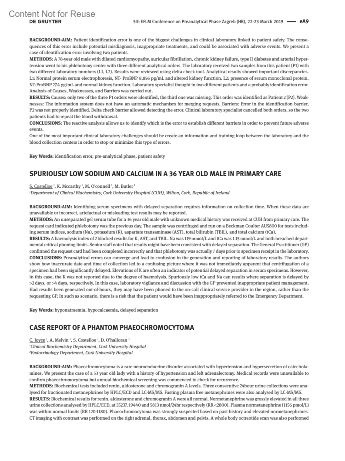 Clinical Chemistry and Laboratory Medicine 57(4):p eA9-eA10, April 1, 2019.
