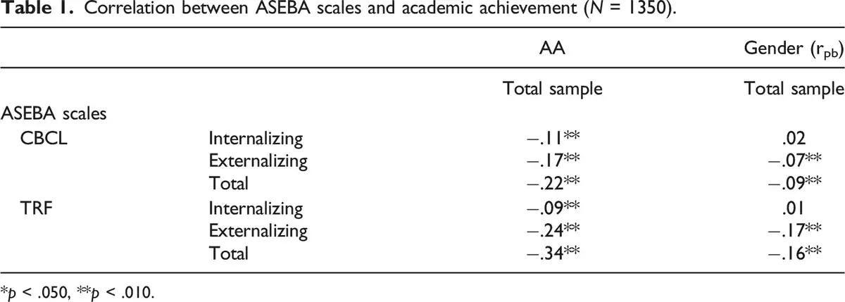 The contribution of gender and academic achievement to internalizing, externalizing and total problems
