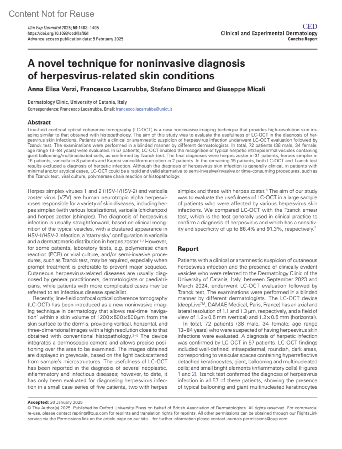 A novel technique for noninvasive diagnosis of herpesvirus-related skin conditions
