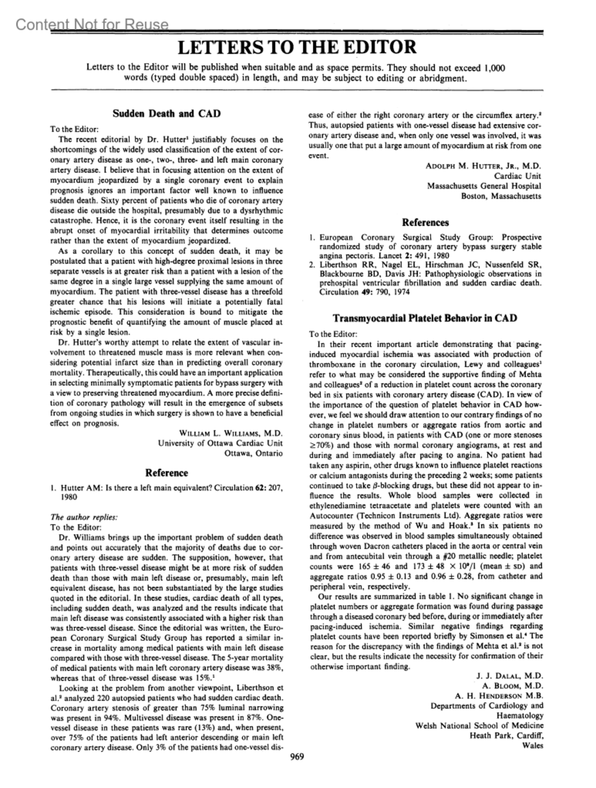 Sudden Death and CADHUTTER, ADOLPH M. JR. M.D.Author informationCardiac Unit, Massachusetts General Hospital, Boston, MassachusettsCirculation 63(4):p 969, April 1981.Copyright © 1981 American Heart Association, Inc.