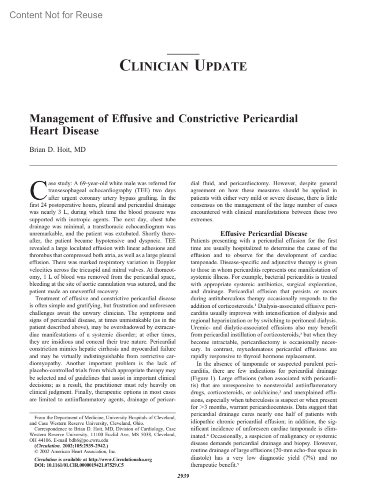 Management of Effusive and Constrictive Pericardial Heart Disease