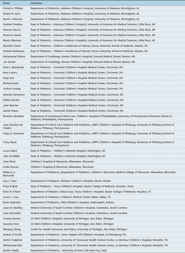 - 14. Gist KM, Blinder JJ, Bailly D, et al. Neonatal and Paediatric Heart and Renal Outcomes Network: design of a multi-centre retrospective cohort study. Cardiol Young. 2019; 29: 511–518.