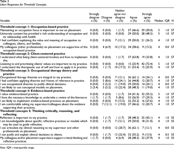 Threshold concepts are integral to occupational therapy students' descriptions of professional identity and contribute to its development.