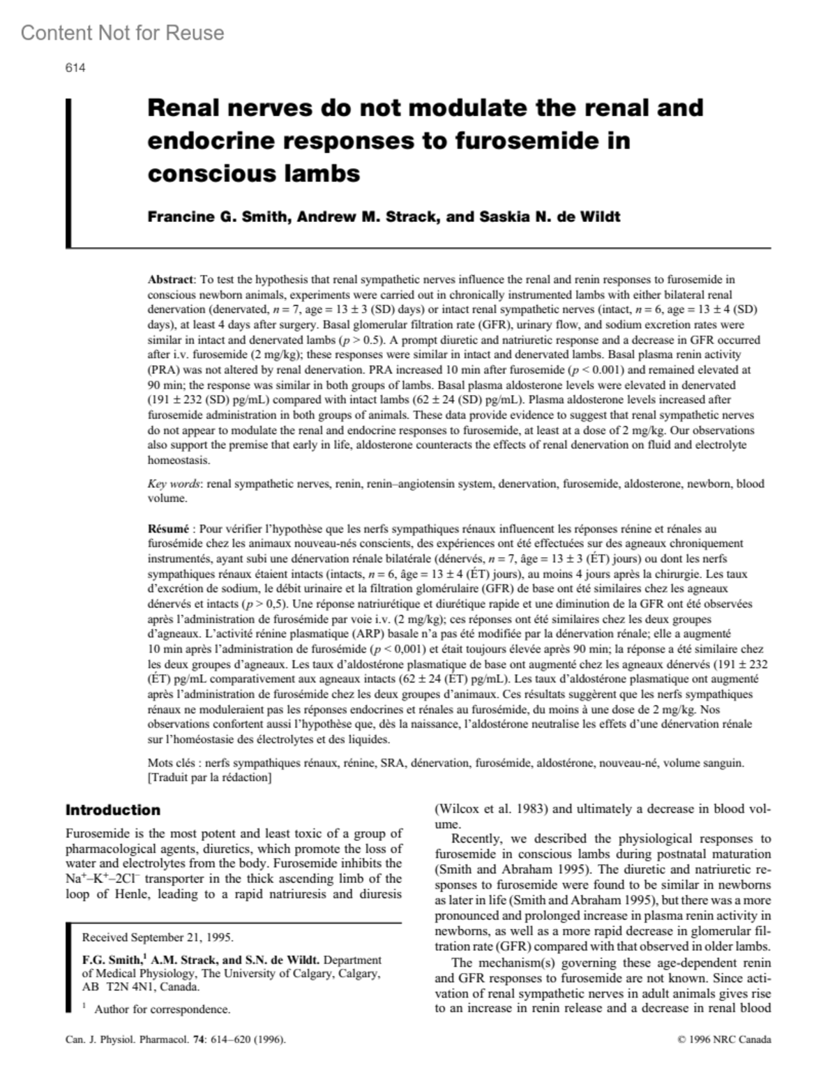 Canadian Journal of Physiology and Pharmacology 74(5):p 614-620, May 1996.