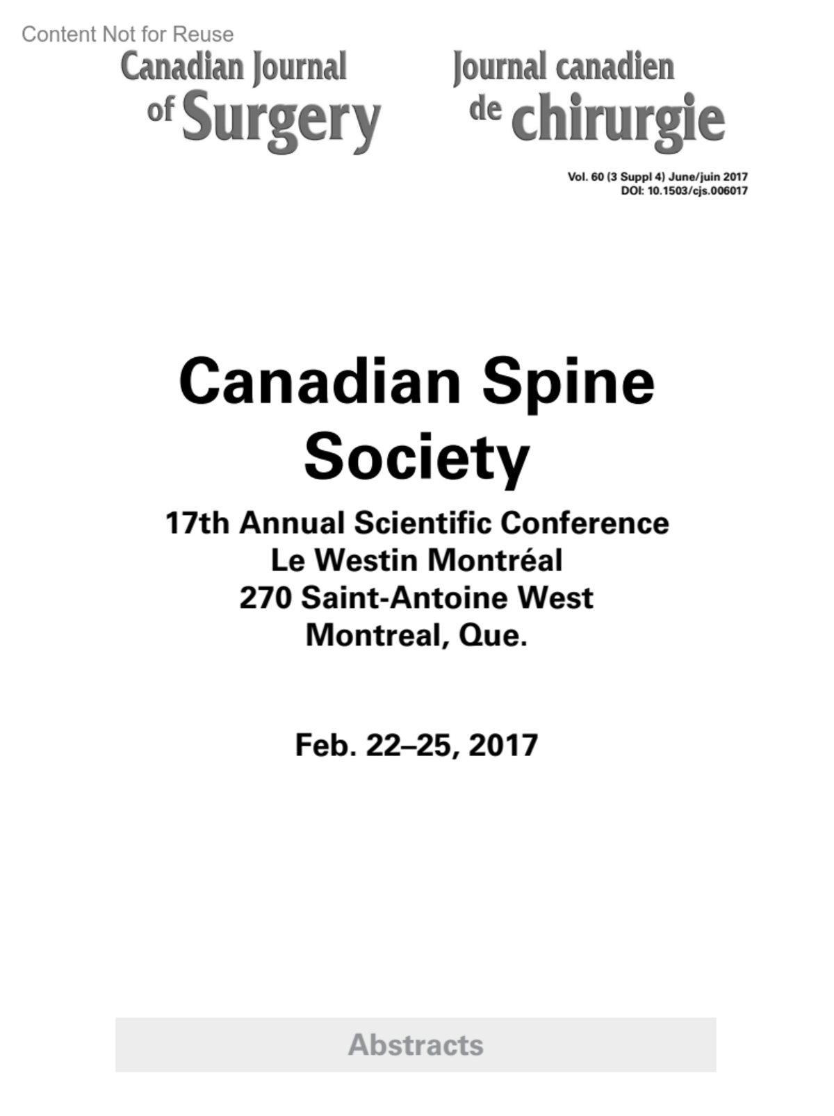 Canadian Journal of Surgery 60(3):p S71, June 2017.