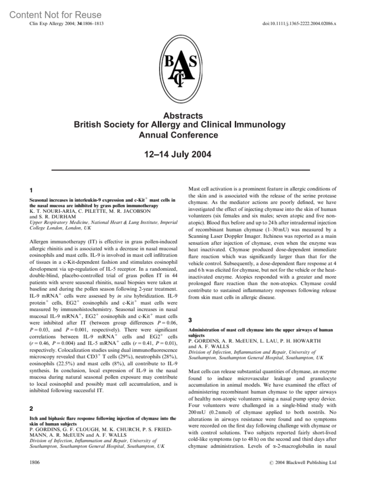 Clinical & Experimental Allergy 34(11):p 1813, November 2004.