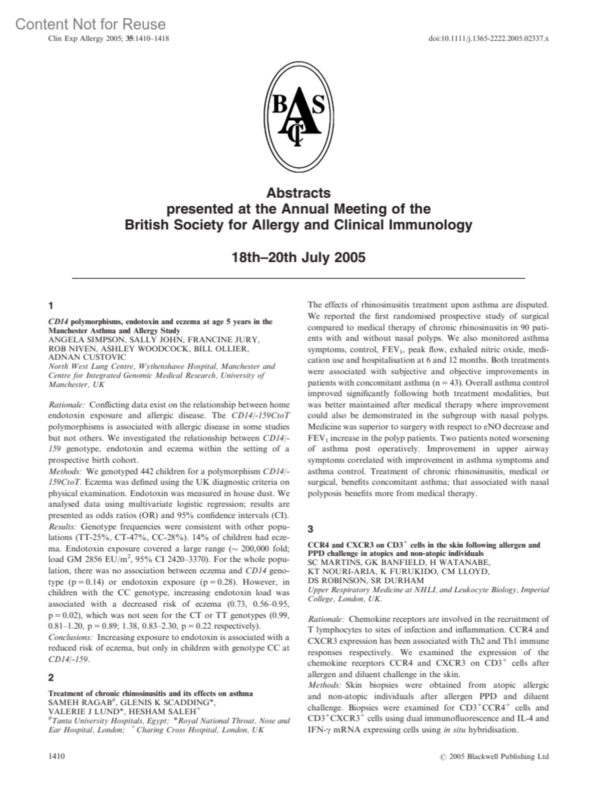 Clinical & Experimental Allergy 35(10):p 1416, October 2005.