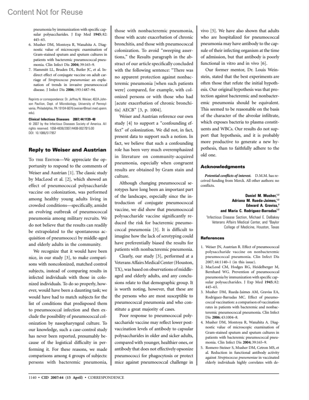 - Musher, Daniel M.