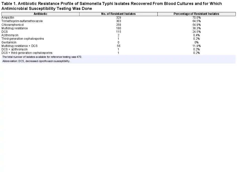 - 34. Parry CM, Thuy CT, Dongol S, et al Suitable disk antimicrobial susceptibility breakpoints defining Salmonella enterica serovar Typhi isolates with reduced susceptibility to fluoroquinolones. Antimicrob Agents Chemother2010; 54:5201–8.