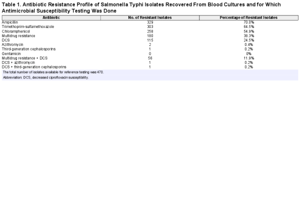 Decreased Ciprofloxacin Susceptibility and Genotyphi Genotype