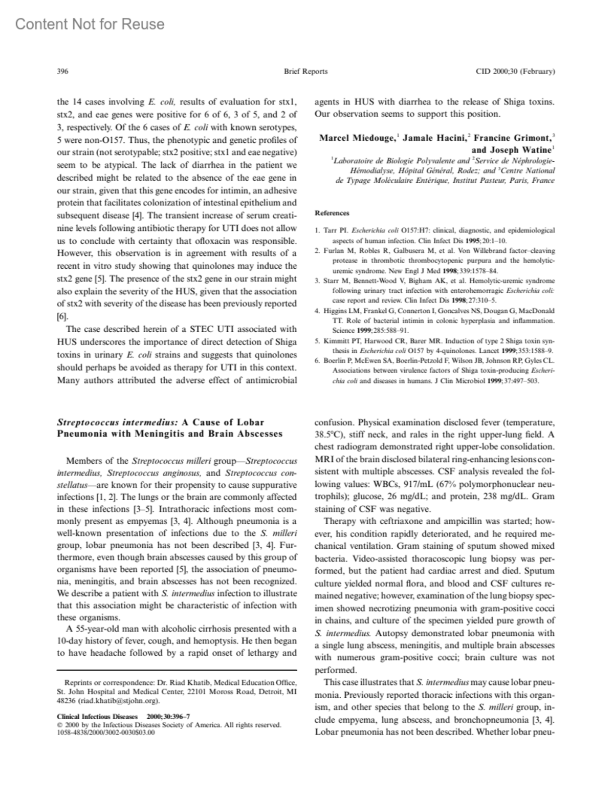 Clinical Infectious Diseases 30(2):p 396-397, February 2000. | DOI: 10.1086/313672