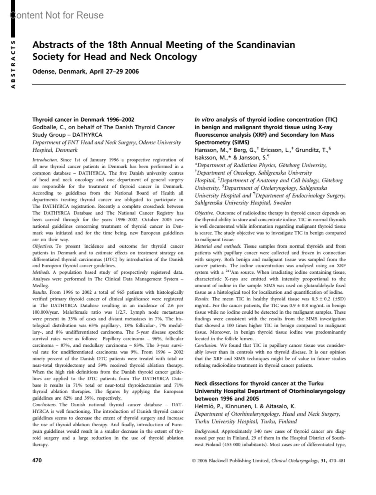 ††Department of Otorhinolaryngology, Head and Neck Surgery, Kuopio University Hospital, Finland