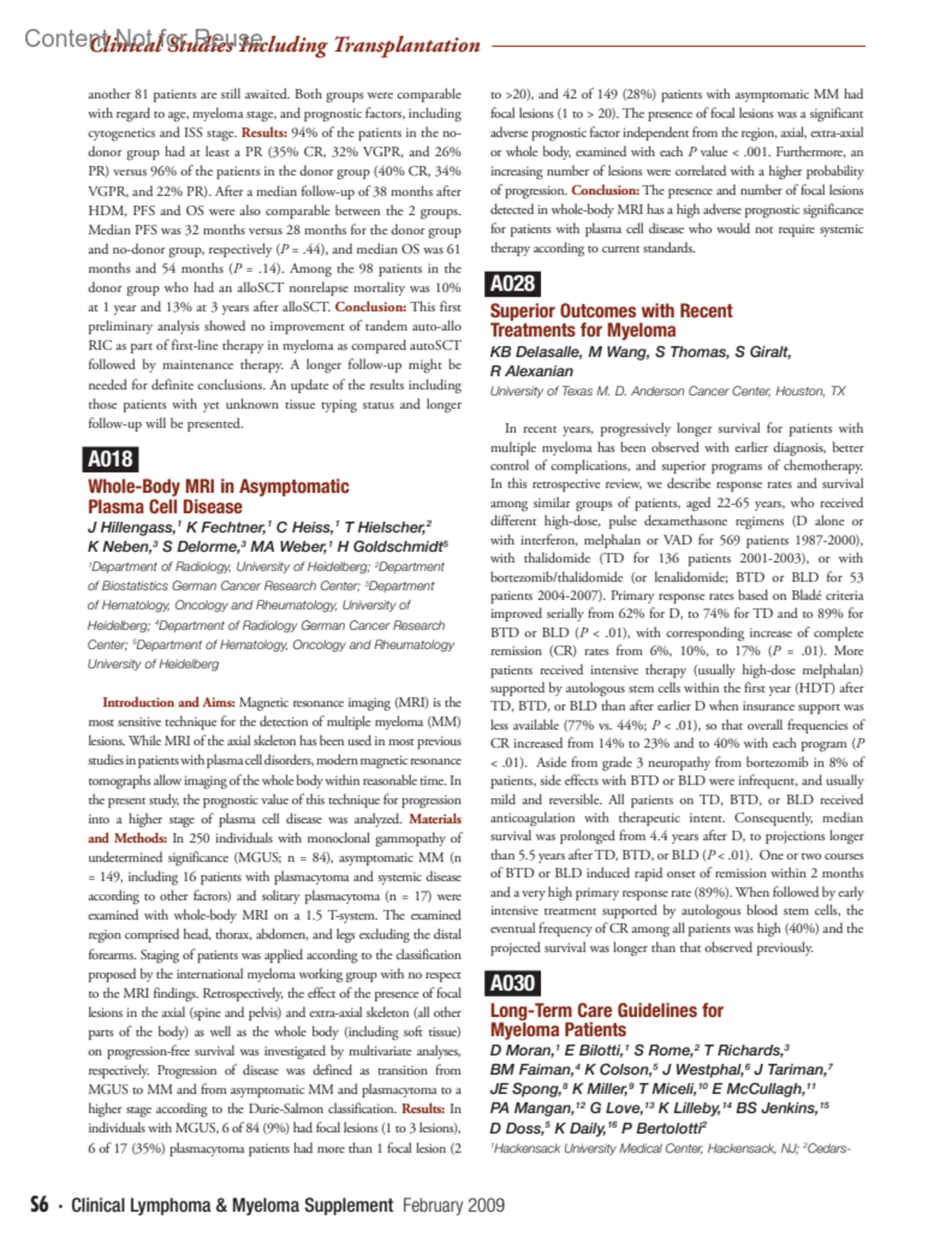 Clinical Lymphoma & Myeloma 9:p S6-S7, February 2009.