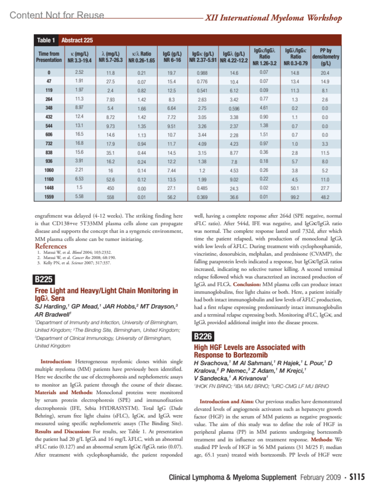Clinical Lymphoma & Myeloma 9:p S115, February 2009.