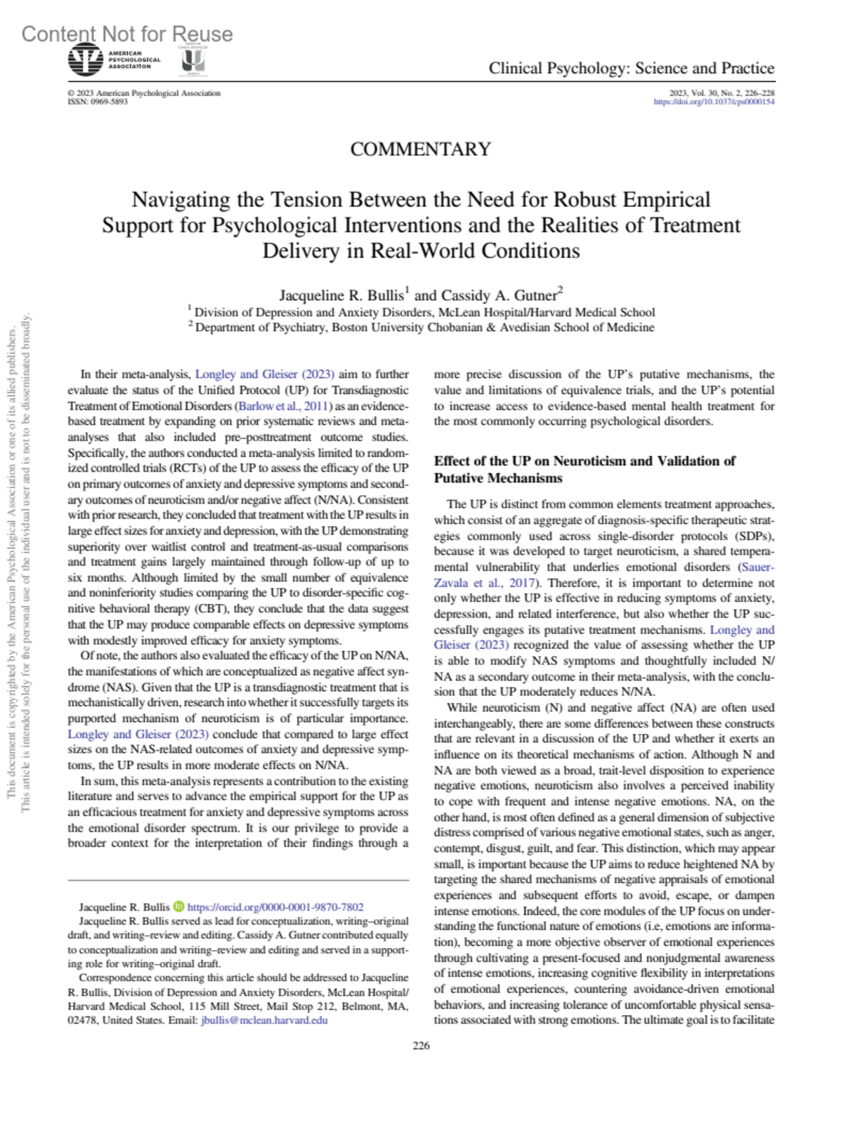 Clinical Psychology: Science & Practice 30(2):p 226-228, June 2023. | DOI: 10.1037/cps0000154