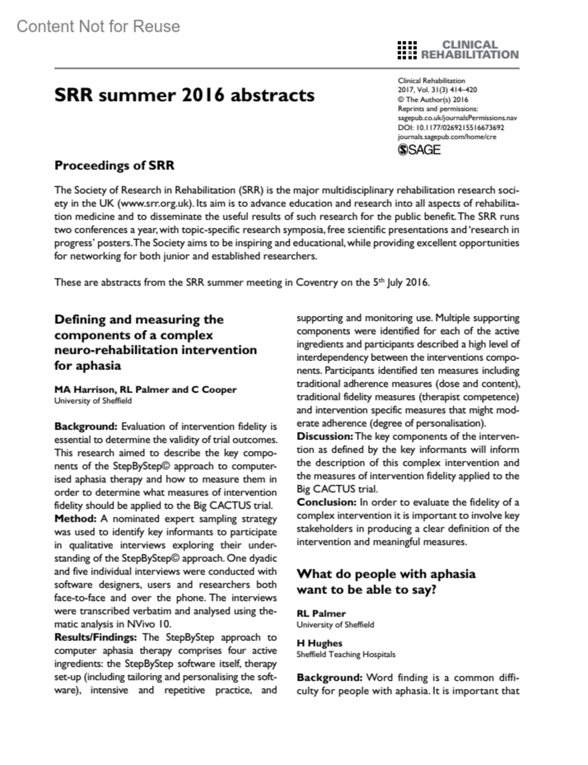 SRR summer 2016 abstractsClinical Rehabilitation 31(3):p 414-420, March 2017. | DOI: 10.1177/0269215516673692Copyright ©2017Sage Publications
