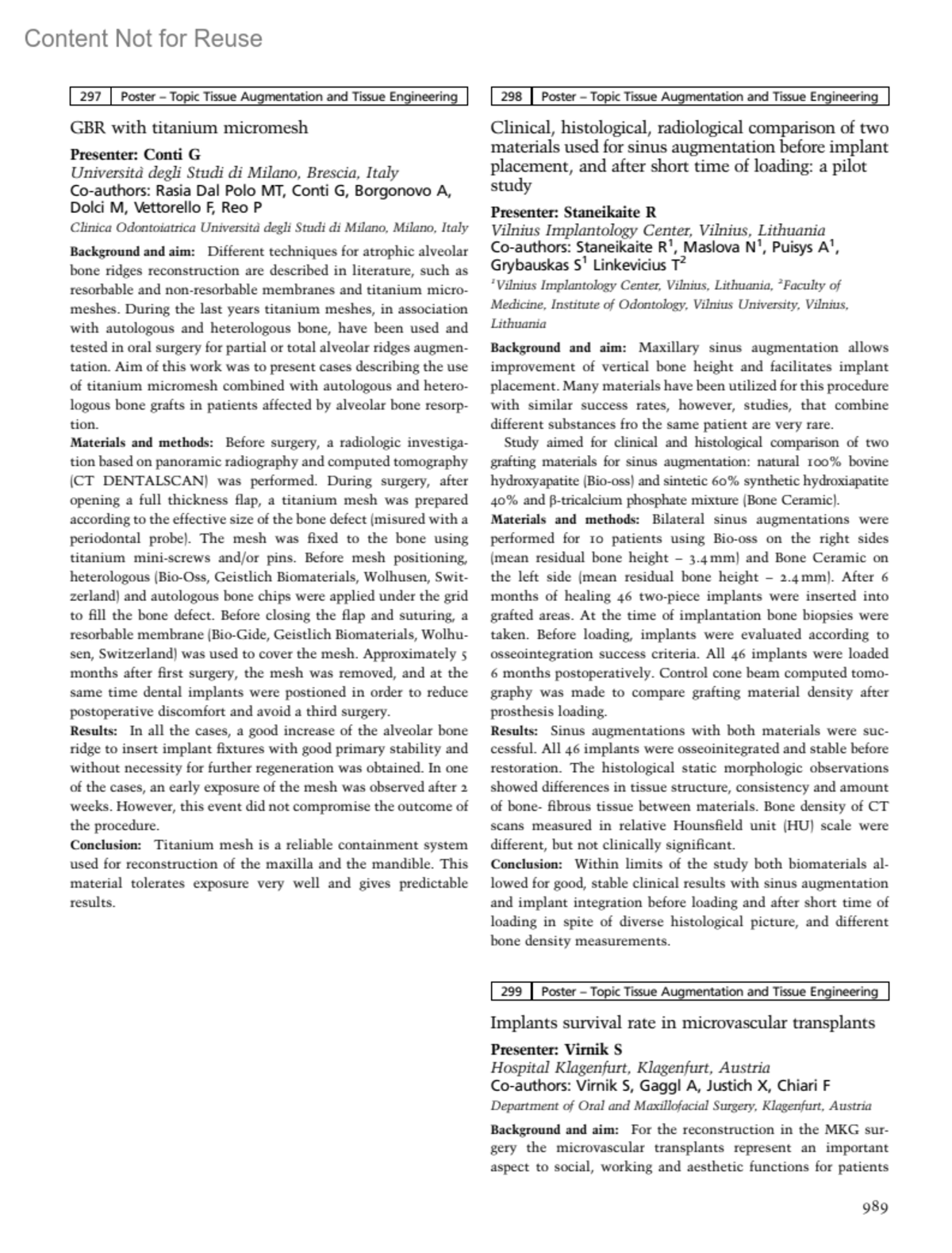 299 Poster - Topic Tissue Augmentation and Tissue Engineering