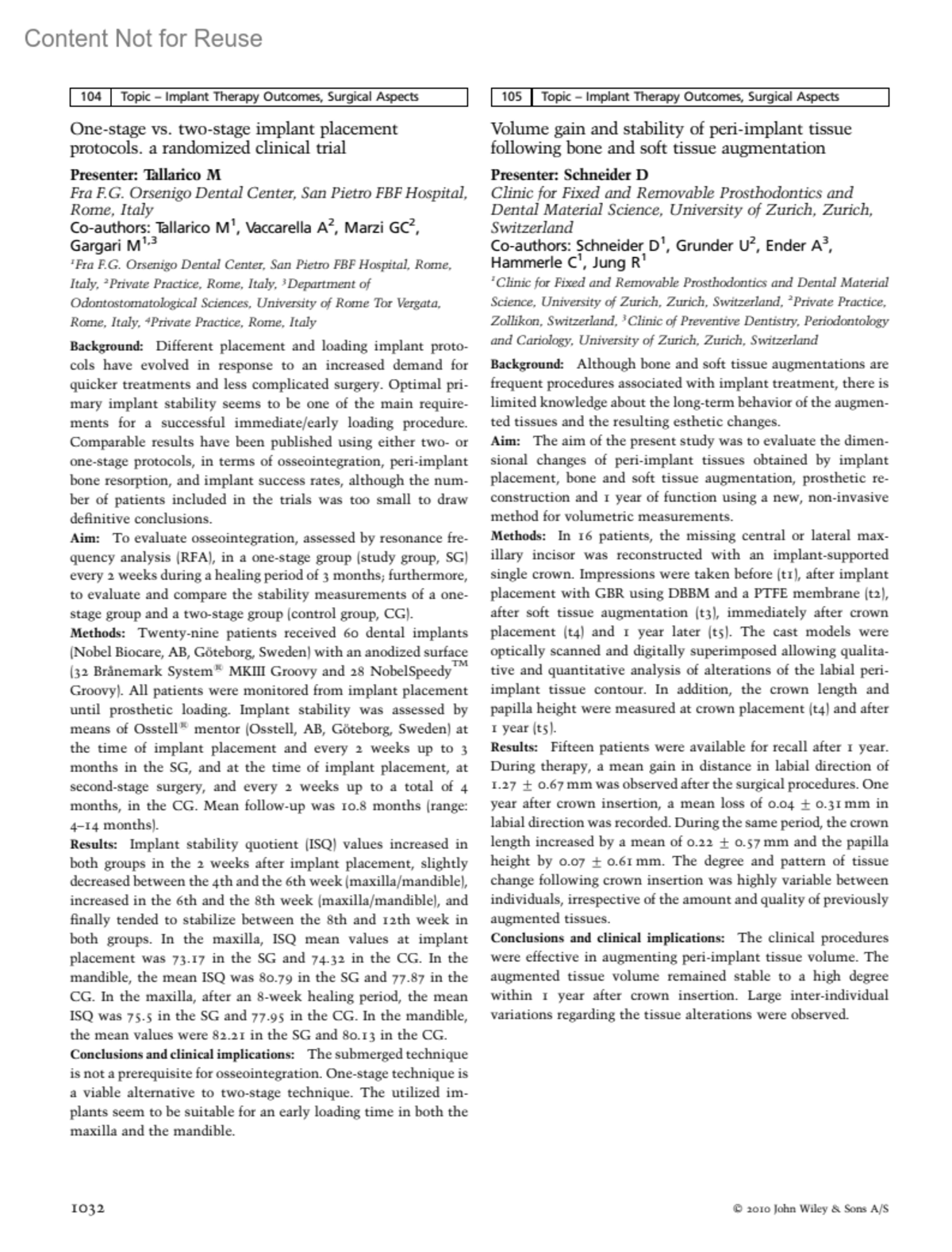 Clinical Oral Implants Research 21(10):p 1032, October 2010.