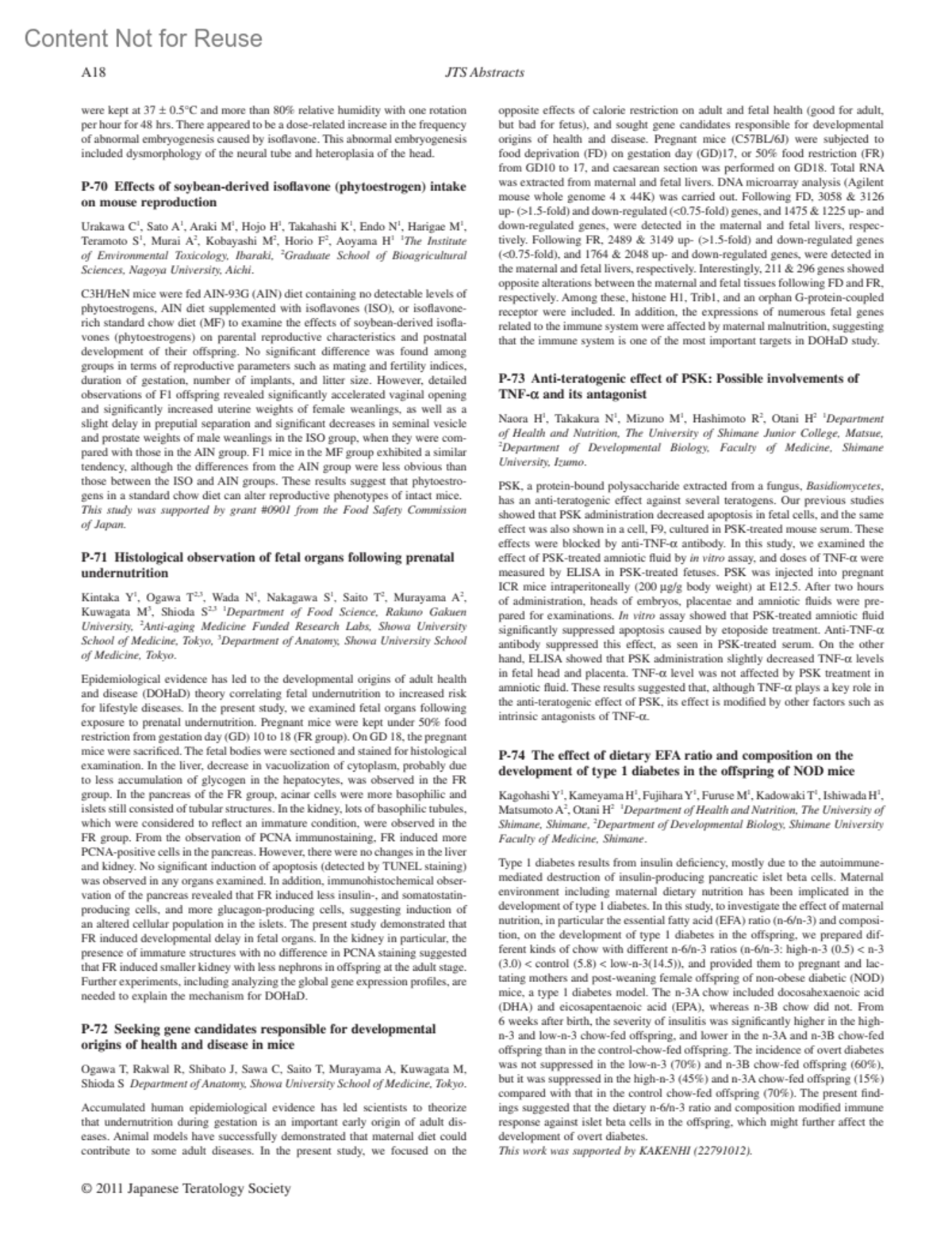Seeking gene candidates responsible for developmental origins of health and disease in mice