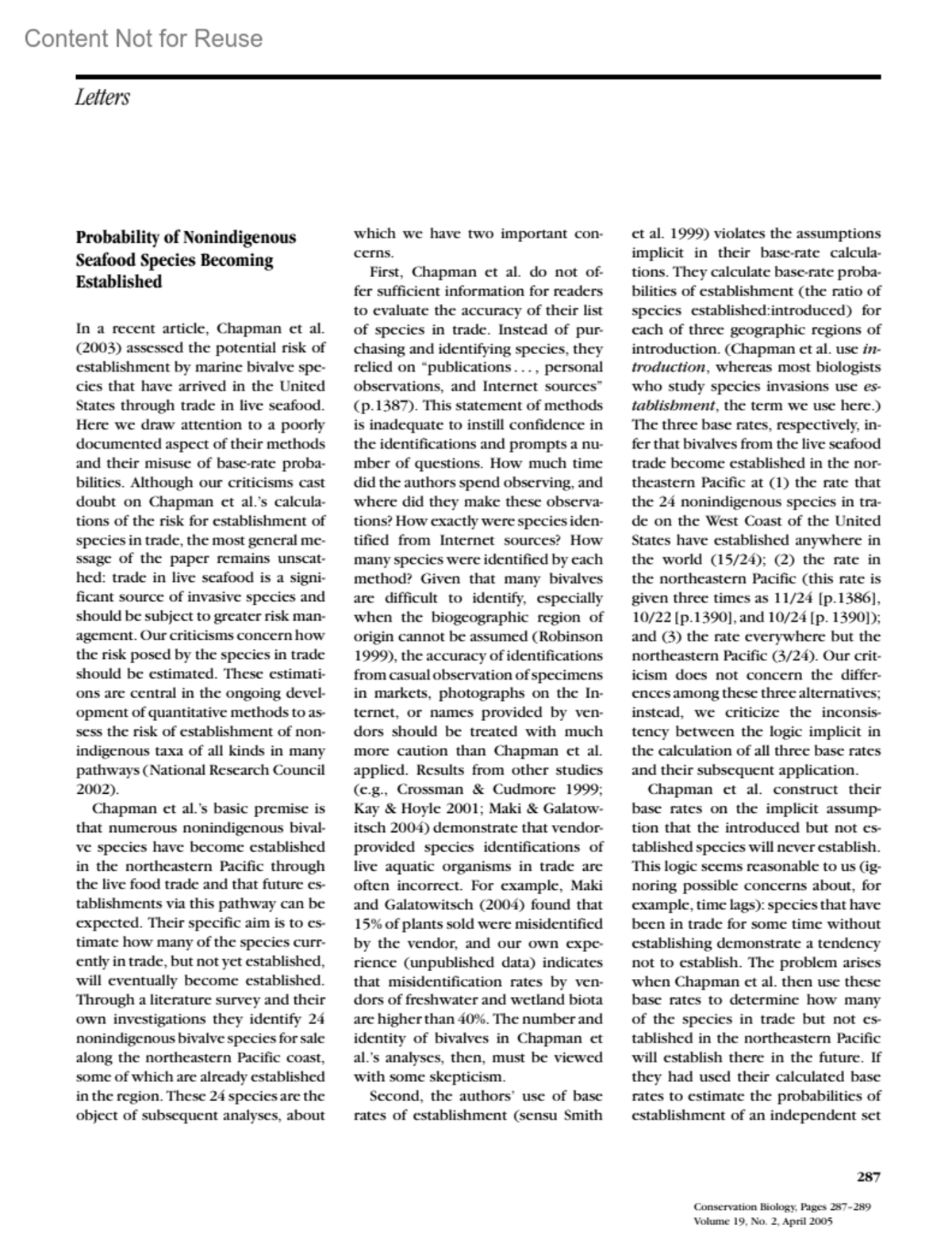 *Department of Fisheries and Wildlife, Oregon State University, Hatfield Marine Science Center, 2030 SE Marine Science Dr., Newport, OR 97365-5296, U.S.A.