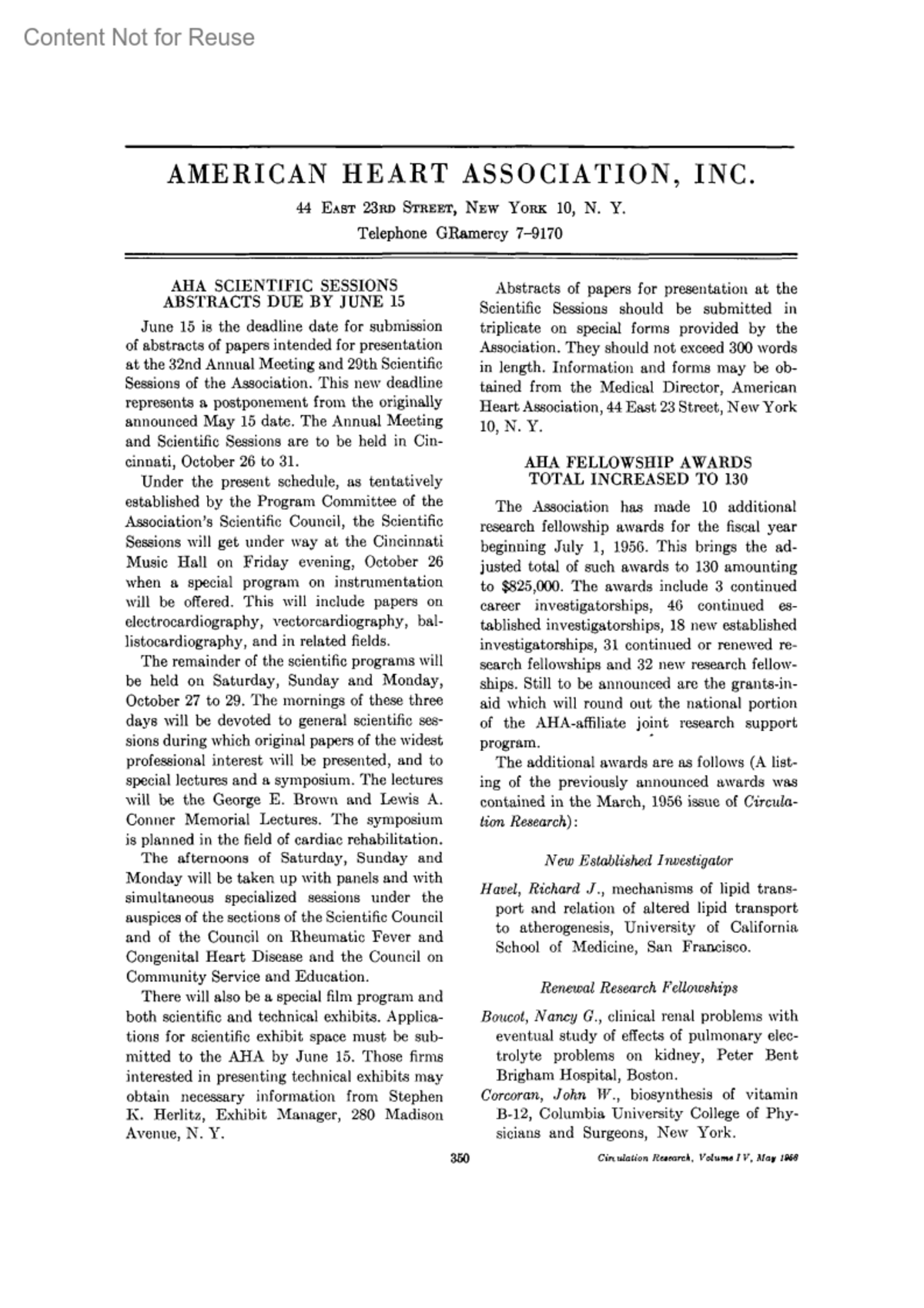 AMERICAN HEART ASSOCIATION, INC.Circulation Research 4(3):p 350-352, May 1956.Copyright © 1956 American Heart Association, Inc.