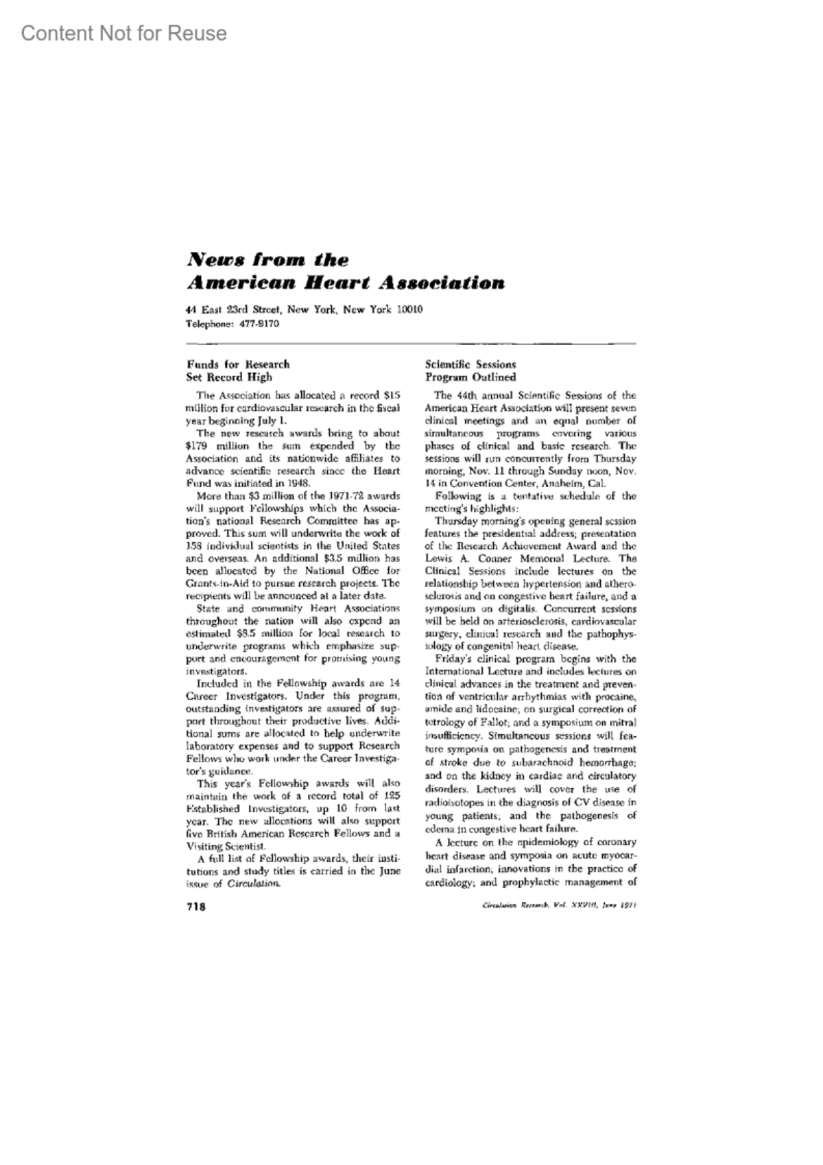 News from the American Heart AssociationCirculation Research 28(6):p 718-721, June 1971.Copyright © 1971 American Heart Association, Inc.