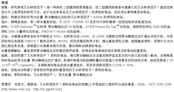Cai HF, Shi JF, Gu GH. Construction of forkhead transcription factor 1 plasmid standard.Zhongguo Zuzhi Gongcheng Yanjiu yu Linchuang Kangfu. 2009;13(7): 1263–1266(China) [http://www.crter.cnhttp://en.zglckf.com]