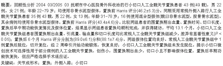 Modified minimally invasive total hip arthroplasty through a lateral approach in 43 cases