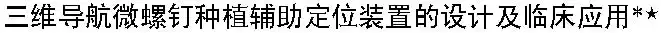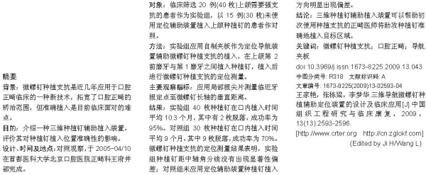 Wang JY, Zhang DL, Li MH.A three-dimensional positioning guide for accurate mini-screw insertion: Design and clinical application. Zhongguo Zuzhi Gongcheng Yanjiu yu Linchuang Kangfu. 2009;13(13): 2593-2596. [http://www.crter.cnhttp://en.zhlckf.com]