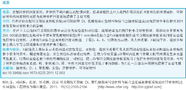 An ideal fracture fixation system should strong fix bone fracture at early time and prevent stress shelter effect-induced local osteoporosis. Degradable internal fixation material provides theoretical basis for preparing this fixation system.