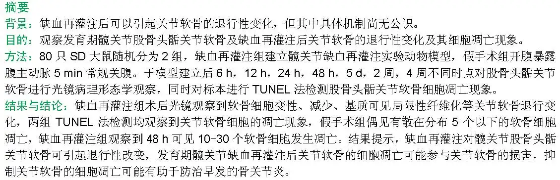 SymbolDoes ischemia/reperfusion impact apoptosis of articular chondrocyte in the femoral head epiphyses