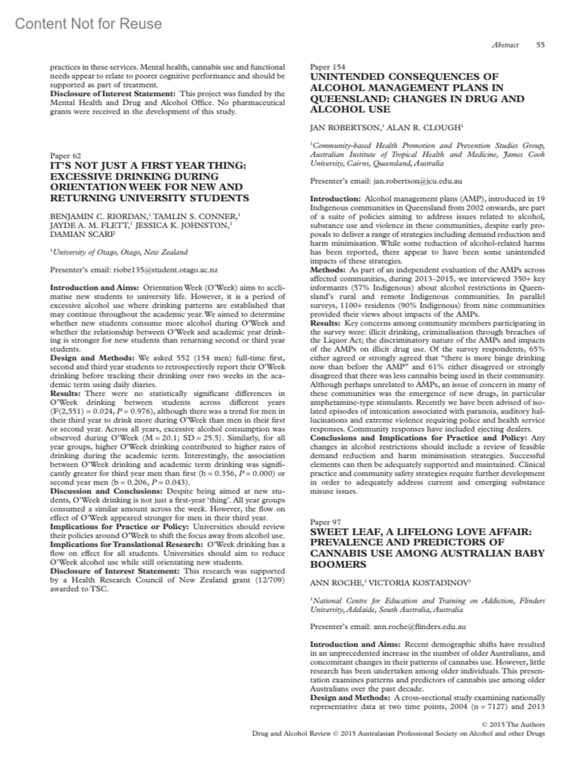 UNINTENDED CONSEQUENCES OF ALCOHOL MANAGEMENT PLANS IN QUEENSLAND: CHANGES IN DRUG AND ALCOHOL USE