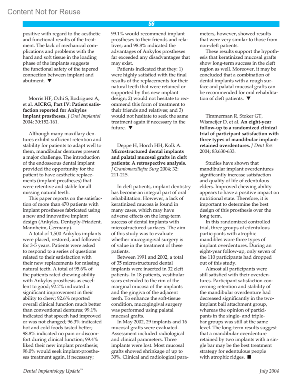 Microstructured dental implants and palatal mucosal grafts in cleft patientsA retrospective analysis.Dental Implantology Update 15(7):p 56, July 2004.Copyright © 2004 AHC Media LLC.