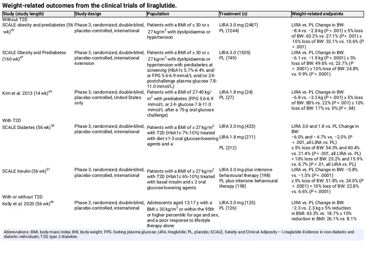 - 139. Deng Y, Park A, Zhu L, Xie W, Pan CQ. Effect of semaglutide and liraglutide in individuals with obesity or overweight without diabetes: a systematic review. Ther Adv Chronic Dis. 2022;13:20406223221108064.