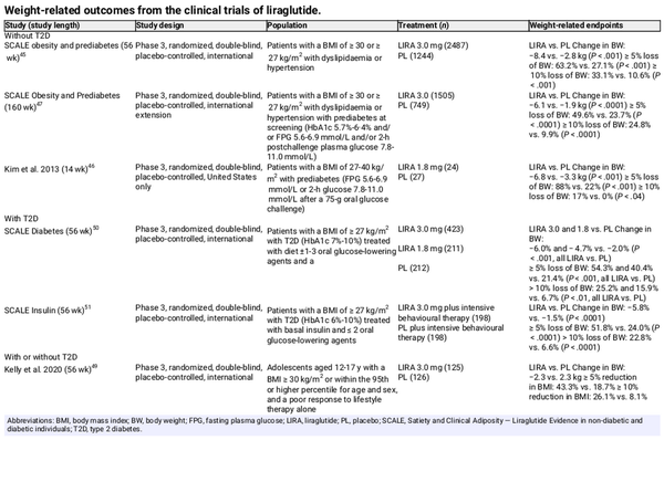 - 58. Davies MJ, Aronne LJ, Caterson ID, et al. Liraglutide and cardiovascular outcomes in adults with overweight or obesity: a post hoc analysis from SCALE randomized controlled trials. Diabetes Obes Metab. 2018;20(3):734–739.
