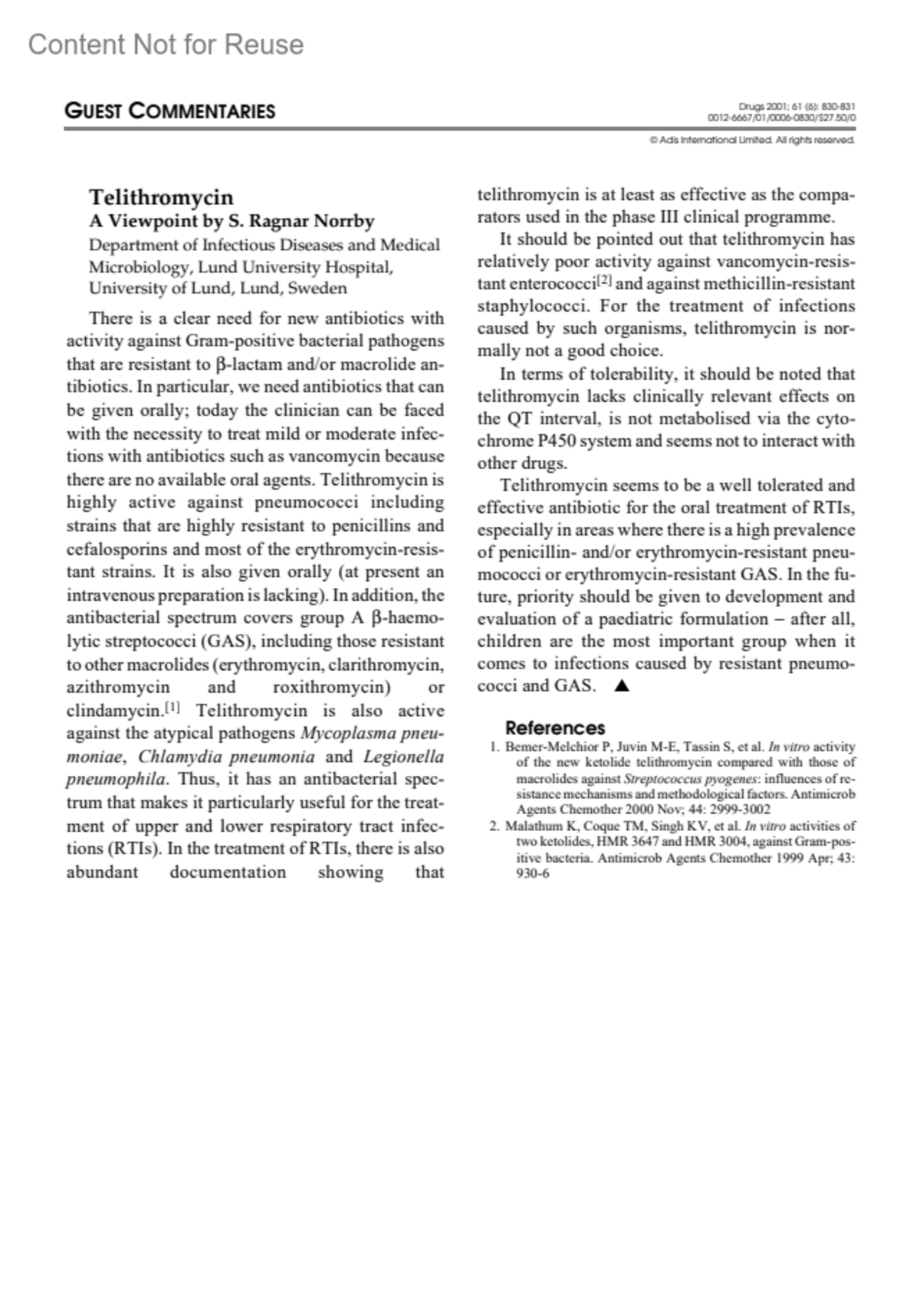 Copyright © 2001 Adis International
