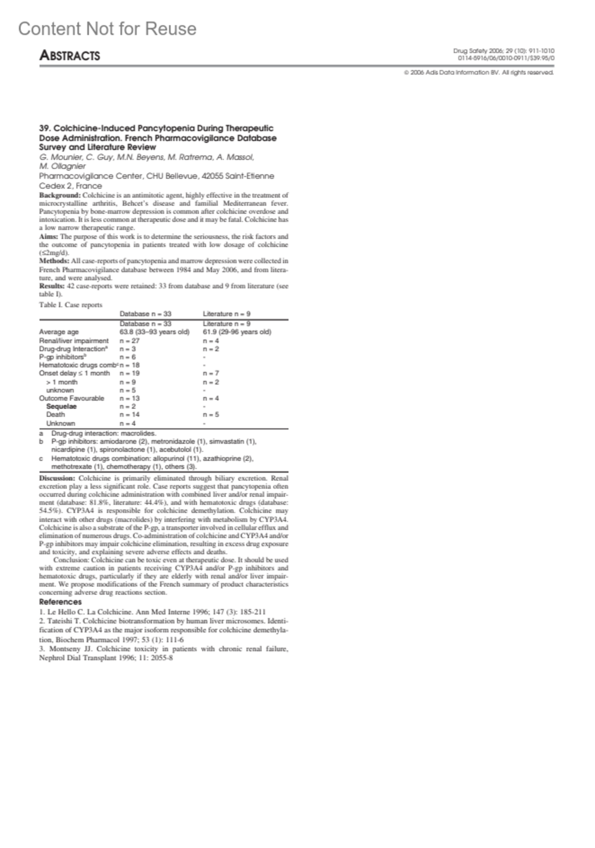 Colchicine-Induced Pancytopenia During Therapeutic Dose Administration. French Pharmacovigilance Database Survey and Literature Review