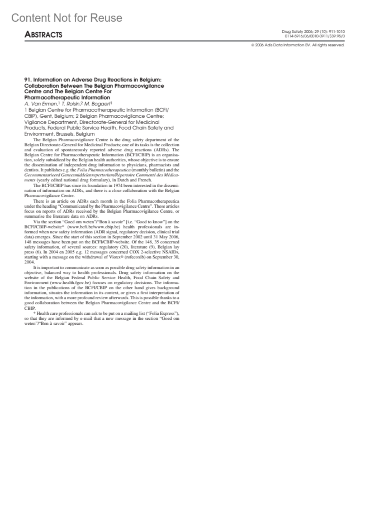 Information on Adverse Drug Reactions in Belgium: Collaboration Between The Belgian Pharmacovigilance Centre and The Belgian Centre For Pharmacotherapeutic Information