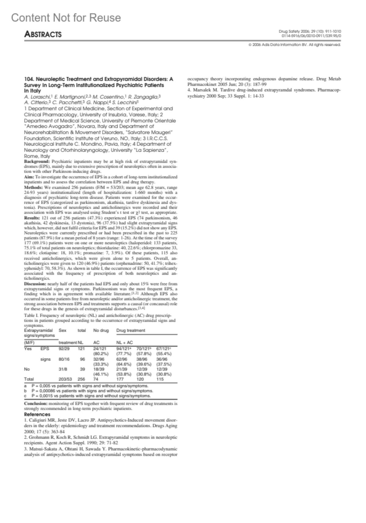 Neuroleptic Treatment and Extrapyramidal Disorders: A Survey In Long-Term Institutionalized Psychiatric Patients In Italy