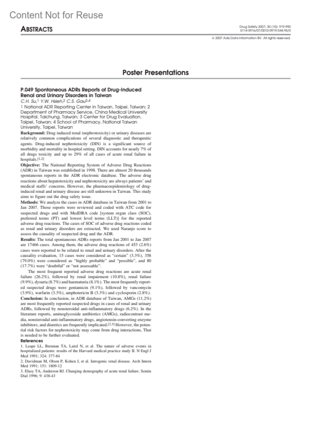 1 National ADR Reporting Center in Taiwan, Taipei, Taiwan